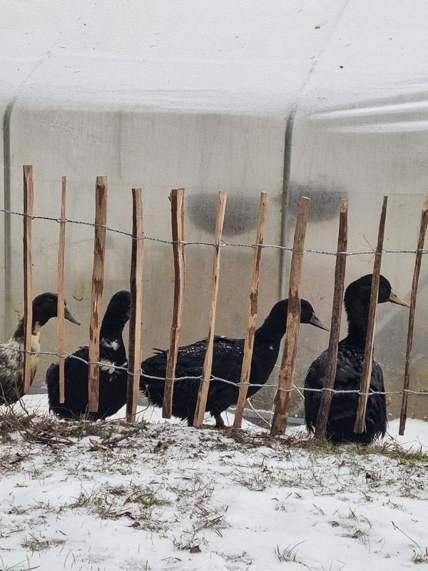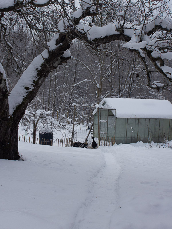 Januari har varit snö och minusgrader (nästan) hela månaden. Jag kan inte minnas sist det var ihållande kallt så länge. Jag trivs bra med kylan. Det är så det ska vara i januari. Ankorna verkar hålla med mig och ligger gärna ute snön trots att det är -10 grader. Nu ser jag fram emot några veckor till med kyla, sen kan det få börja bli varmare igen lagom tills kvällarna är lite ljusare.