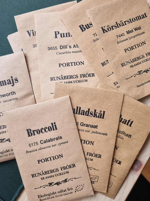 Jag har i stort sett haft en vilomånad från trädgården. Vi har haft (och har fortfarande) ett rejält snötäcke och riktigt kyligt, så vädret har inte lockat ut mig. Det känns skönt att få en lite längre viloperiod från odlingen den här vintern. Jag har varit extremt otaggad, men nu börjar odlingssuget vakna till liv. Jag har plockat bland mina fröpåsar och bestämt mig för vad jag ska börja så i februari. Det blir en del vintersådder och lite tidig kål som jag sår och drar upp inne några veckor innan de planteras ut i växthusen. Nu börjar jag längta efter lite grönt!