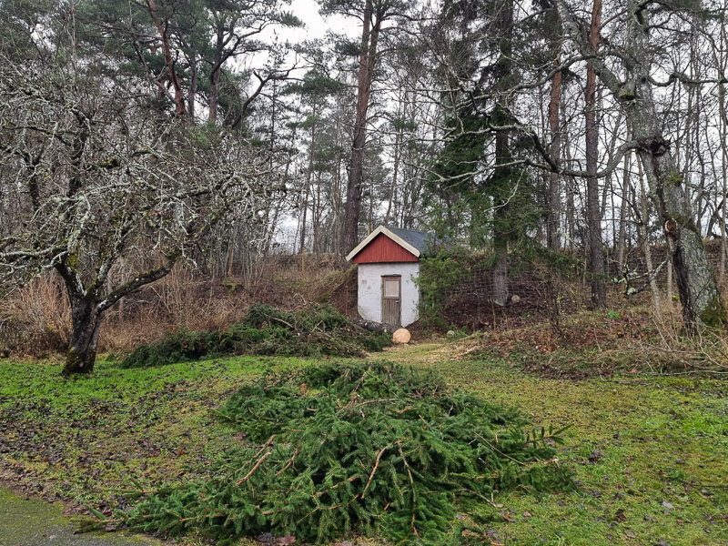 – Gjort ett risstaket framför jordkällaren av allt ris från granen och syrenhäcken