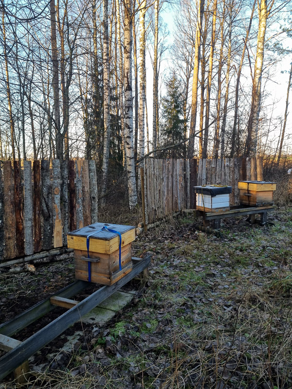 Glest plank av bakar från pappas sågverk skyddar bikuporna från alltför stark nord- och västanvind