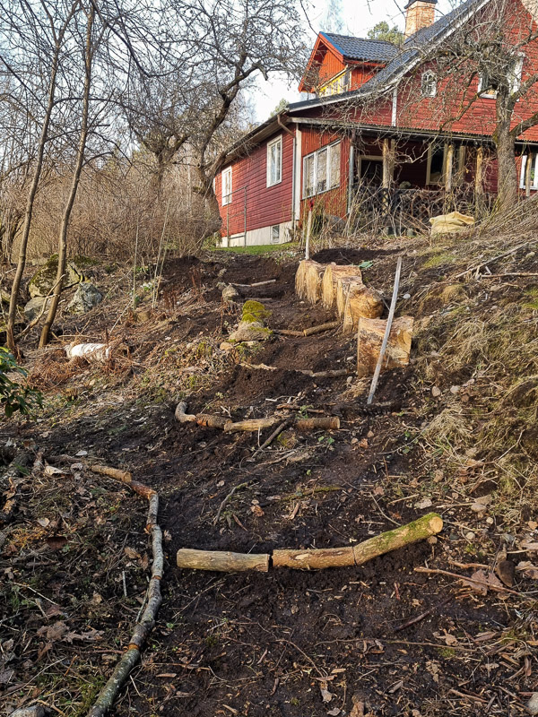 – Börjat gräva ur och forma gången ner genom woodlandet så att det blir trappsteg
