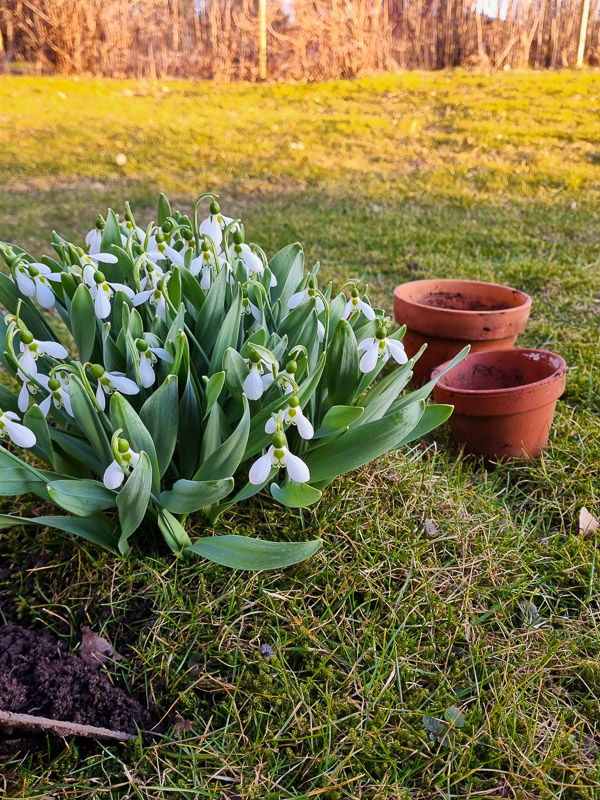 – grävt upp snödroppar och planterat i små lerkrukor, som jag senare ska plantera ut i woodlandet så att det blir som ett hav av snödroppar där tidigt tidigt på våren