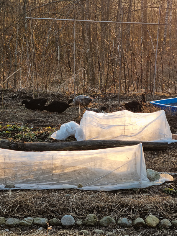 – Skyddat vitlök, tulpaner och annat smått som börjar komma upp i köksträdgården från ankornas nyfikna framfart (de äter allt som ser grönt och gott ut (: )