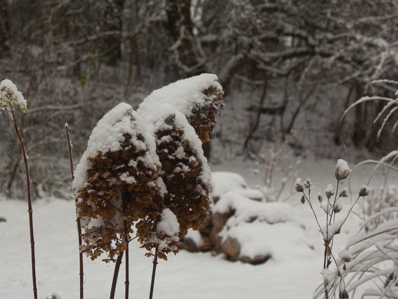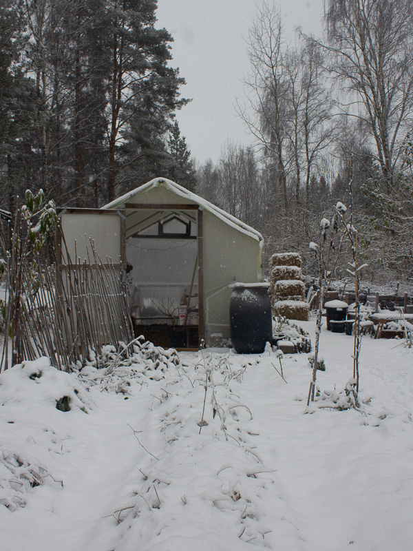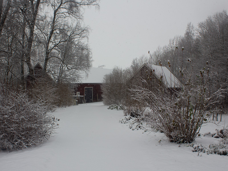 Den här veckan kom säsongens första snö och vi hade några riktigt kalla dagar och nätter. Tyvärr varade det inte så länge och under helgen har all snö smält bort igen. Vilket jag egentligen är glad för – jag har några hundra tulpanlökar kvar att få ner i jorden innan det blir vinter på riktigt. Och lite fler projekt som jag hoppas kunna greja med.