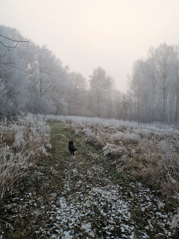 På tal om väder. En morgon i veckan bjöd på helt magisk dimfrost (inte att förväxla med rimfrost, tydligen).