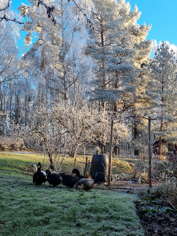 – Satt upp kastanjestaket runt köksträdgården så att ankorna kan gå fritt där inne under vintern. Bara grindar och en liten, liten bit kvar.