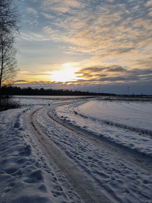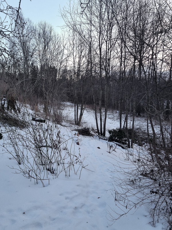 Gången ner mot woodlandet (som är ett pågående projekt jag hoppas bli klar med i år). Det blev lite luftigare efter att vi tog bort ett par träd förra helgen, jämfört med bilden nedanför som är från januari 2025.